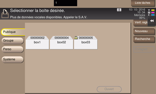 Pour accéder à un fichier dans cette boîte utilisateur, sélectionnez la boîte souhaitée, puis tapez sur [Ouvert].