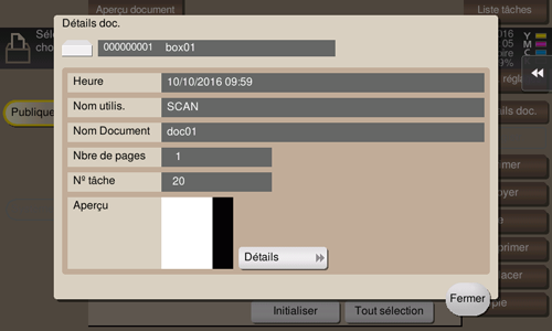 Procédure d'affichage : [Boîte utilisateur]Sélectionner une boîte utilisateur[Ouvrir]Sélectionner le fichier[Détails]