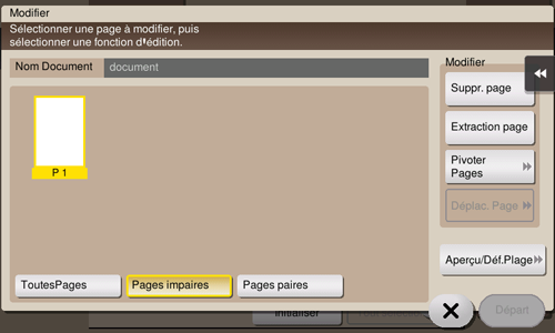 [Déplac. Page] | Recompose les pages en déplaçant certaines. Le déplacement ne peut s'appliquer qu'à une seule page à la fois. Répétez cette opération pour déplacer deux pages ou plus.