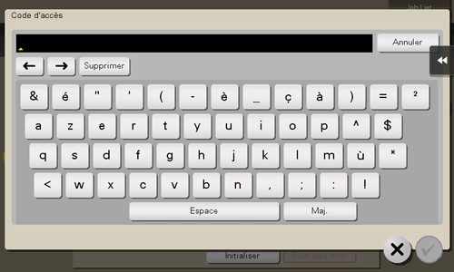 Cet écran s'affiche quand [Réglages administrateur] - [Paramètres sécurité] - [Détails sécurité] - [Fonctions interdites si échec d'authentification] est sur [Mode 2].