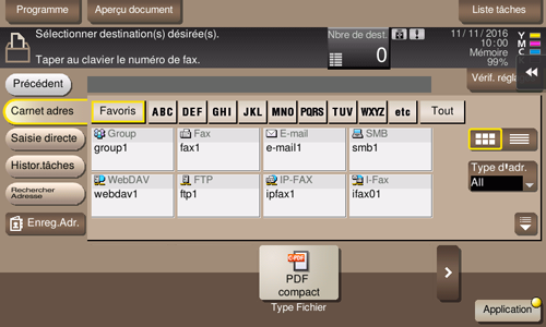 Procédure d'affichage : [Boîte utilisateur][Système][Réception mémoire]Sélectionner le fichier[Envoyer]