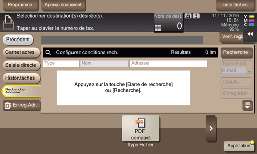 Procédure d'affichage : [Boîte utilisateur][Système][Réception mémoire]Sélectionner le fichier[Envoyer][Rechercher Adresse]