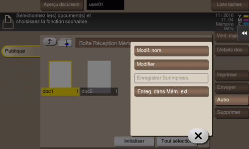 Procédure d'affichage : [Boîte utilisateur][Système][Réception mémoire]Sélectionner le fichier[Autre]