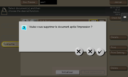 [OUI] | Imprime le fichier et le supprime de la boîte utilisateur. |