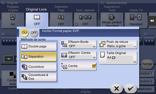 [MARCHE]/ [ARRET] | Sélectionnez [OUI] pour spécifier Original Livre. |