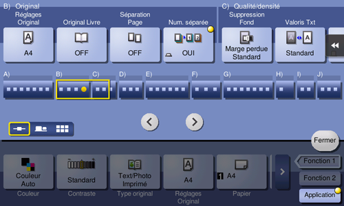 Procédure d'affichage : [Copie][Application][Nombre d'originaux][Numérisation séparée]