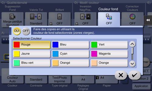Procédure d'affichage : [Copie][Application][Modif. couleur][Couleur fond]