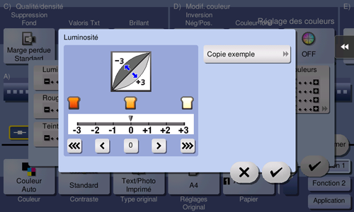 Procédure d'affichage : [Copie][Application][Modif. couleur][Réglage des couleurs][Luminosité]