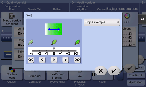 Procédure d'affichage : [Copie][Application][Modif. couleur][Réglage des couleurs][Vert]