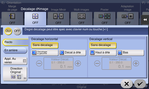 [Recto]/[Verso] | Ajuste la position de l'image sur le papier d'impression en déplaçant l'image dans le sens horizontal ou vertical.
