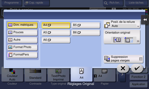 Procédure d'affichage : [Copie][Réglages Original][Format Original]