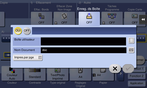 Permet d'enregistrer des images d'originaux sur le disque dur (boîte utilisateur) de cette machine. Vous pouvez également enregistrer un original dans une boîte utilisateur et l'imprime simultanément.