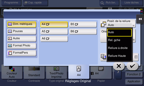 Procédure d'affichage : [Copie][Réglages Original][Position de reliure]