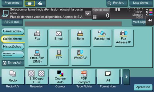 Procédure d'affichage : [Numérisation/fax][Saisie directe]