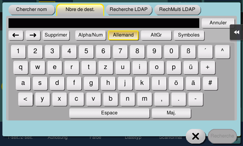 Procédure d'affichage : [Numérisation/fax][Rechercher Adresse][Nbre de dest.]