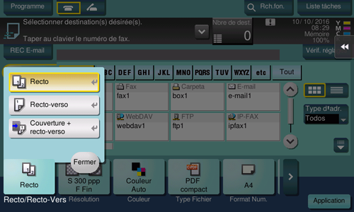 Procédure d'affichage : [Numérisation/fax][Recto/Recto-Verso]