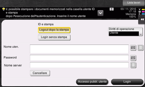 Fare clic su [Login] o premere il tasto Accesso per accedere a questa macchina.