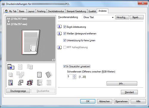 [In Graustufen umsetzen] ist nur verfügbar, wenn der Druckertreiber für Windows (PCL) verwendet wird.