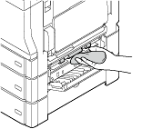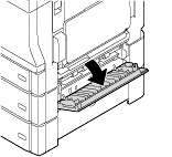 Klappen Sie vor dem Öffnen der rechten Klappe von Fach 2 oder Fach 3 die manuelle Zufuhr ein.