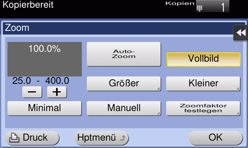 Sie können beim Erstellen einer Kopie ein Bild mit dem angegebenen Zoomfaktor vergrößern oder verkleinern.