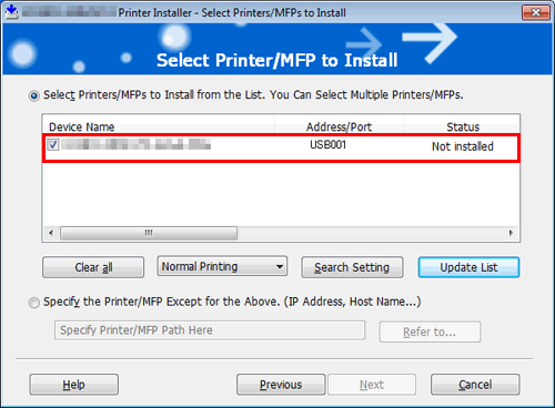 Select the check box of the printer driver you want to install, then click [Next].