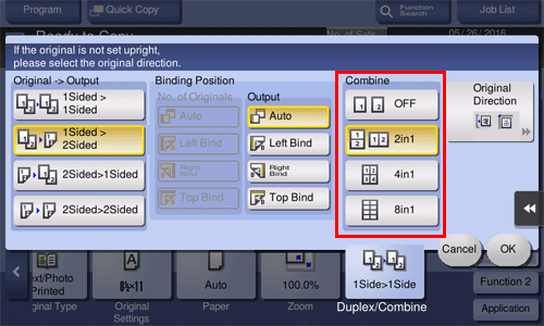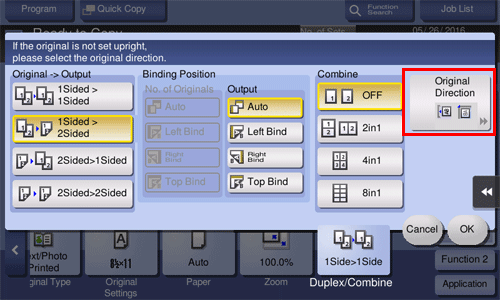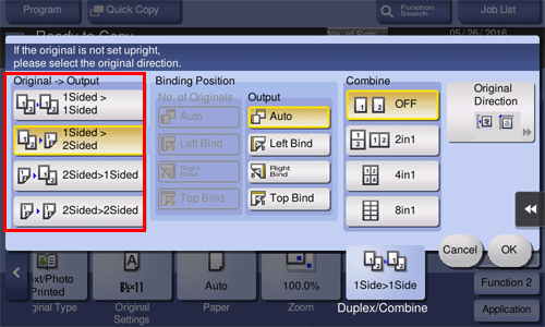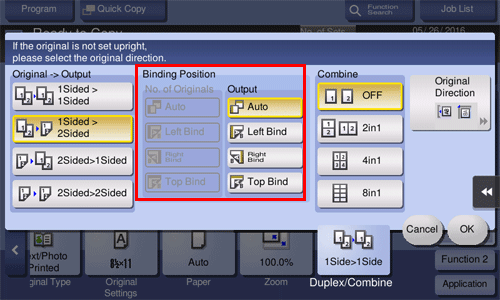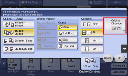 • For [2Sided > 1Sided], select the binding position of [No. of Originals].