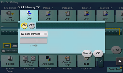 [ON]/[OFF] | Select [ON] to specify Quick Memory TX. |