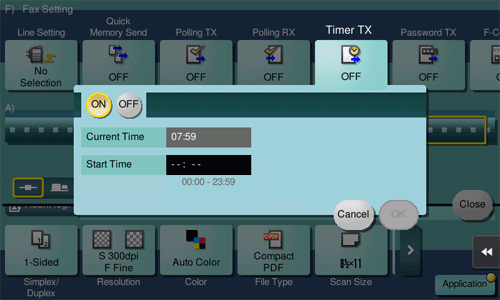[Start Time] | Specify when to start fax transmission using the Keypad. To display the Keypad, tap the input area for the numeral. |