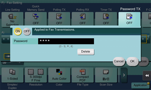 [ON]/[OFF] | Select [ON] to specify Password TX. |
