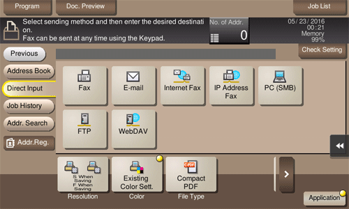 • If necessary, you can register the destination that you have entered directly into the address book. For details, refer to Here.