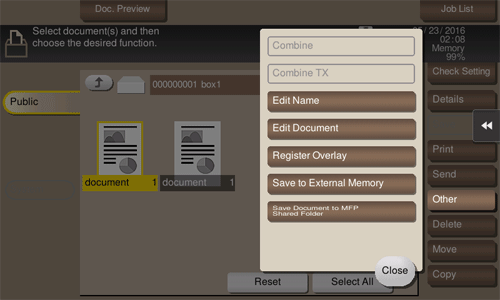 You can print and send multiple files simultaneously. Also, you can rename and copy files.