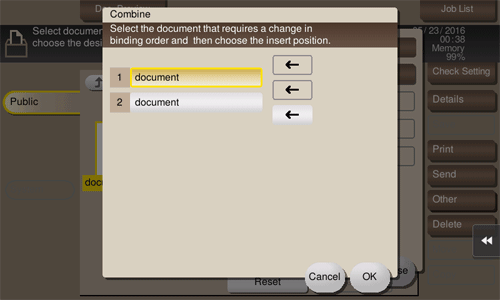 Set the print sequence (combine) and tap [OK], then the option settings screen for printing will be displayed.