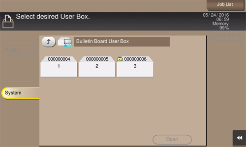 To access a file in this User Box, select the desired User Box, then tap [Open].