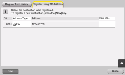 • If necessary, you can register destinations displayed in the transmission log into the address book. For details on how to register, refer to Here.