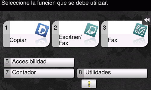 [Accesibilidad] | Toque este botón para configurar el entorno operativo del panel de control, por ejemplo, al ajustar el panel táctil o cambiar el sonido de las teclas. Para obtener más información, consulte Aquí. |