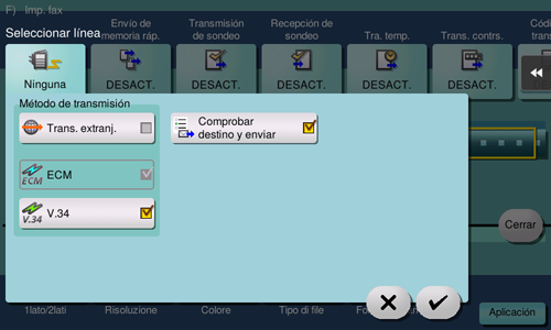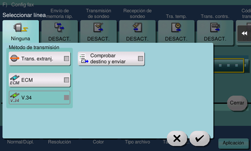 Cancele el ajuste de [V.34] y, a continuación, toque [Aceptar].