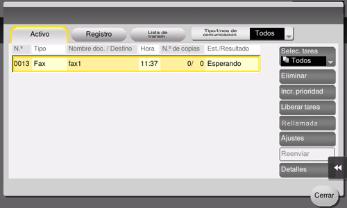 Las tareas pendientes de reenvío se reenvían automáticamente transcurrido un tiempo mediante la función de rellamada automática. Sin embargo, también se puede reenviar el fax manualmente.