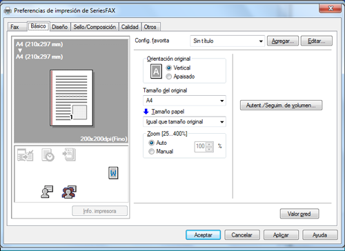 En la ficha [Básico], haga clic en [Autent./Seguim. de volumen...]