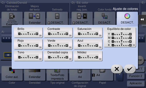 Ajuste la calidad de color del original para la copia. Puede comprobar el acabado imprimiendo una copia de muestra.