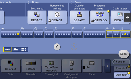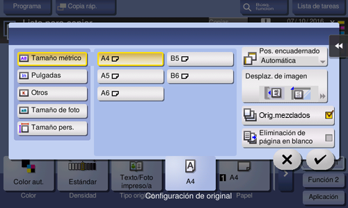 Los originales se escanean con ajustes diferentes para cada juego y se copian de forma colectiva. Use esta función cuando haya varios tipos de originales mezclados, como originales de 1 sola cara que se van a imprimir de un lado del papel, y originales de 2 caras que se van a copiar con ampliación.