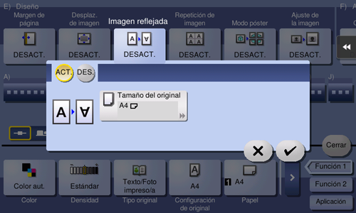 [ACT.]/[DES.] | Seleccione [ACT.] para especificar Imagen reflejada. |