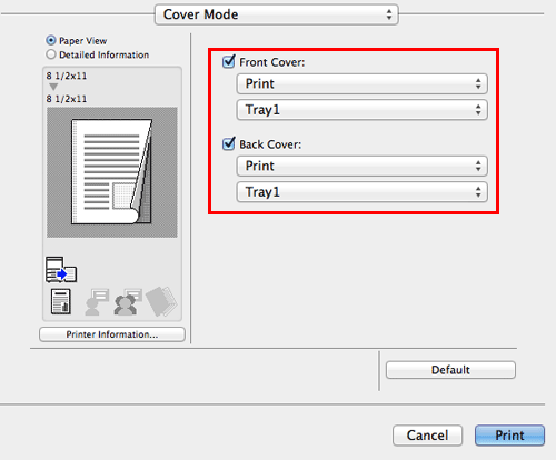 En [Cover Mode], seleccione las casillas de verificación [Front Cover:] y [Back Cover:].