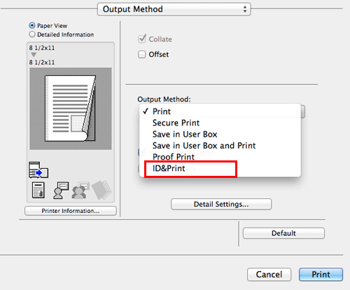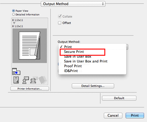 En [Output Method:], en la ventana [Output Method], seleccione [Secure Print].