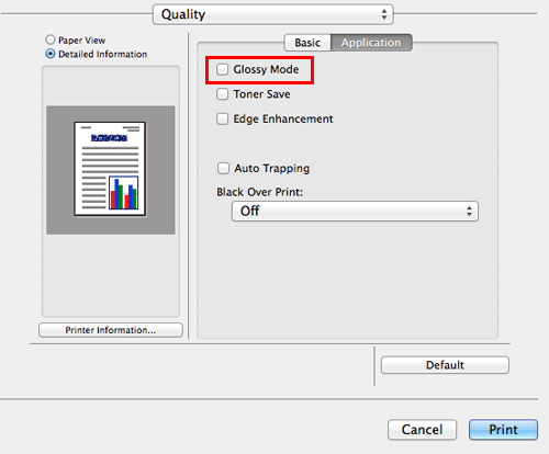 En [Quality], seleccione la casilla de verificación [Glossy Mode].