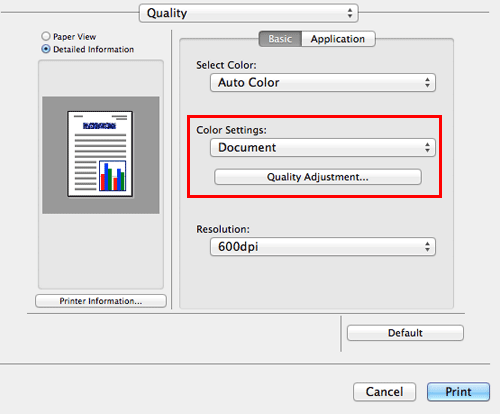 En [Select Color:], en [Quality], seleccione un modo de color para la impresión.