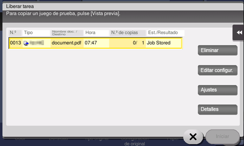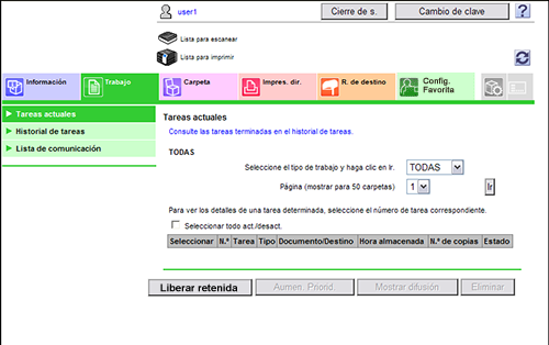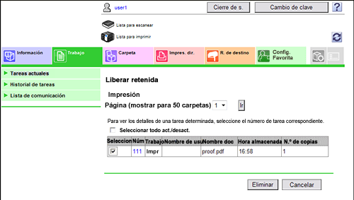 Una tarea, que se ha enviado a la máquina con [Proof Print] activada, puede borrarse de forma remota utilizando Web Connection a través del explorador web del ordenador.