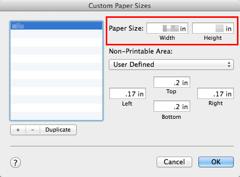 Seleccione [Manage Custom Sizes...] en la lista Paper Size.