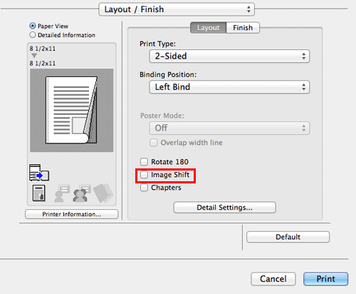En [Layout / Finish], seleccione la casilla de verificación [Image Shift].