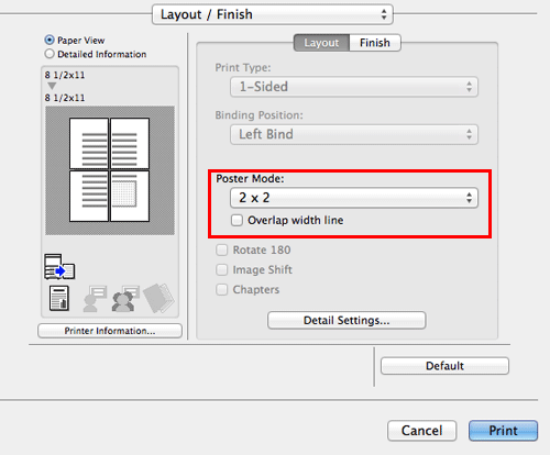 En [Poster Mode:], en [Layout / Finish], seleccione "N