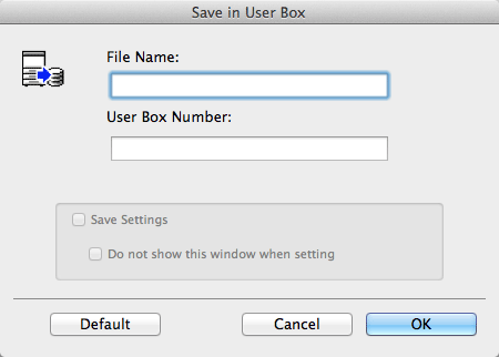 Si se selecciona la casilla de verificación [Save Settings], la configuración se guarda. Si se selecciona la casilla de verificación [Do not show this window when setting], este cuadro de diálogo no aparecerá la próxima vez. En caso de que siempre utilice el mismo nombre de archivo y número de carpeta, seleccione esta casilla de verificación para eliminar la necesidad de introducirlos cada vez.